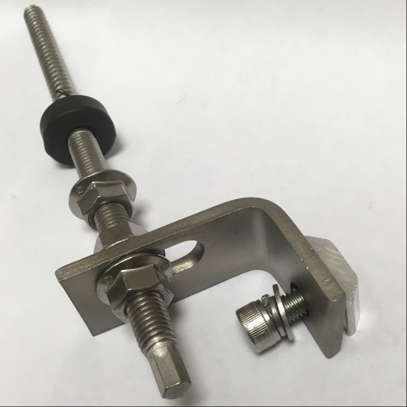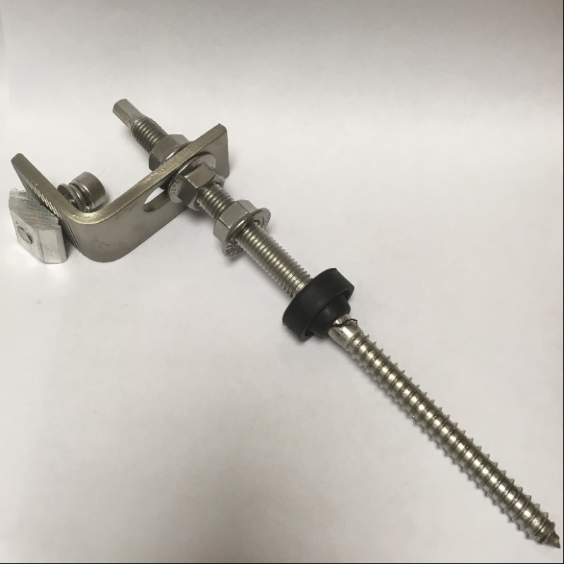 The Fastensol Hanger Bolt comes supplied with: EPDM seal and two nuts, as well as a substantial steel L-bracket. The bracket locks between the upper two nuts and is height adjustable.